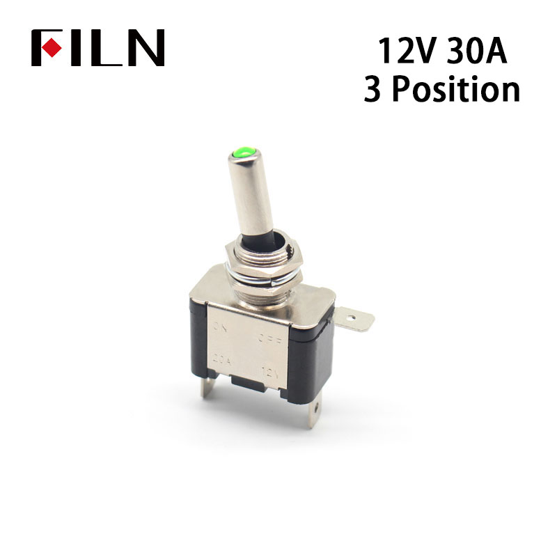 This is a 12V 30A 3 position LED car toggle switch, which comes in RED LED TOGGLE SWITCH, GREEN LED TOGGLE SWITCH, YELLOW LED TOGGLE SWITCH , and BULE LED TOGGLE SIWTCH. This type of switch is typically used in car modifications to control various electrical devices in the vehicle. Generally, the current of a 12V 30A three position LED toggle switch is 30A.