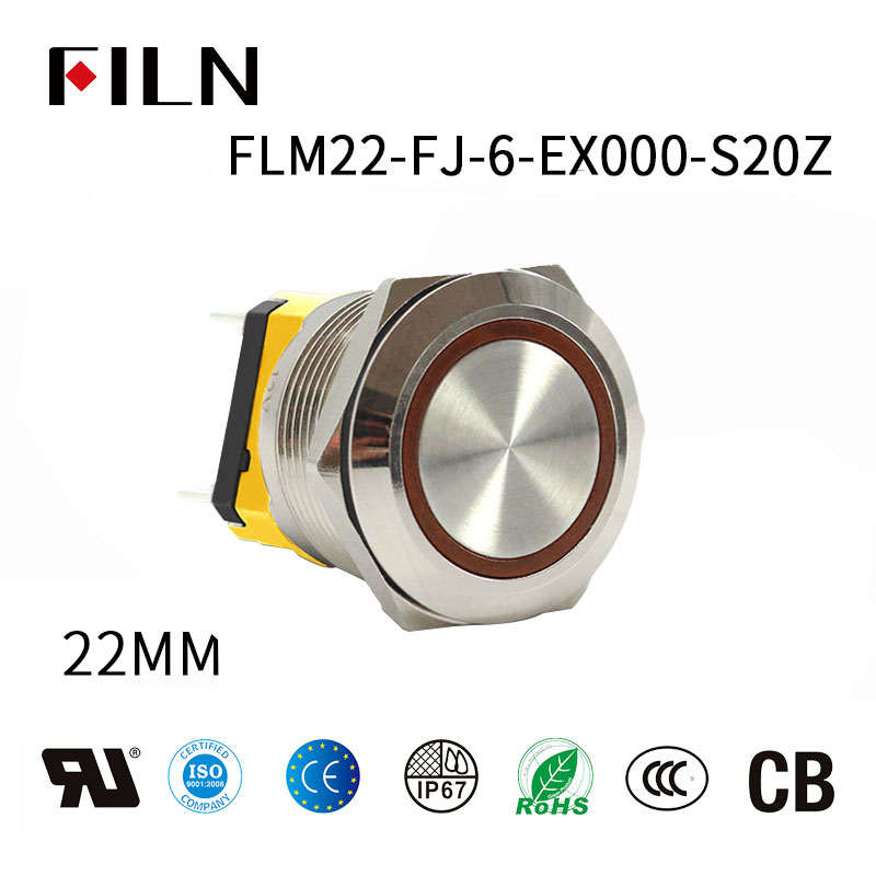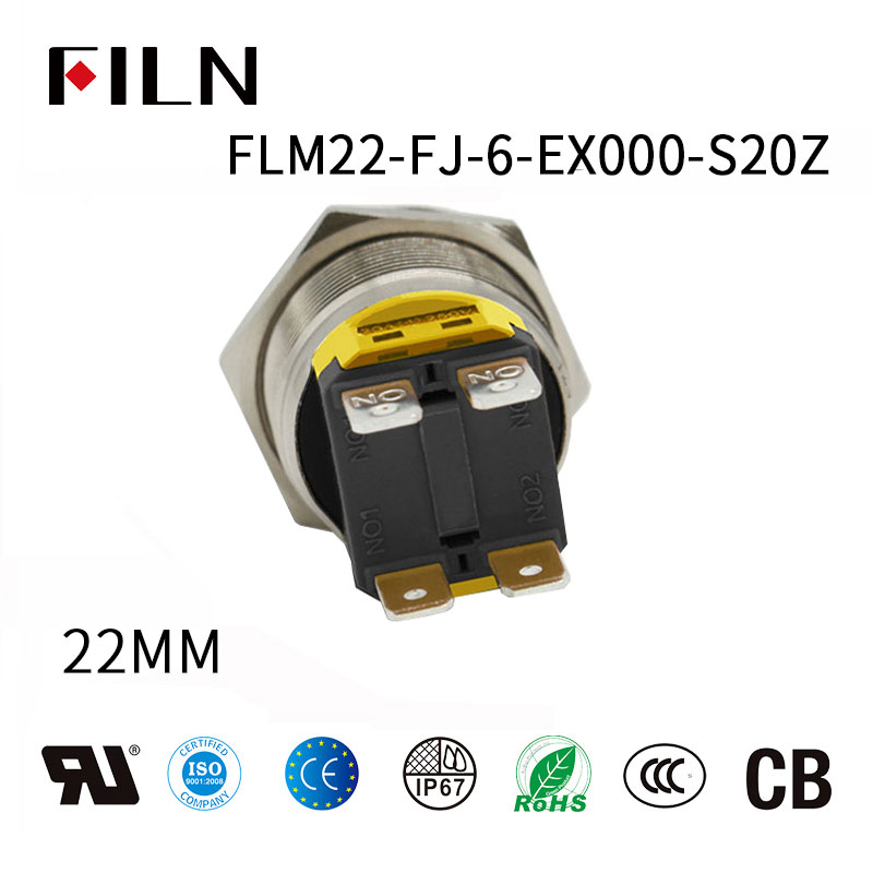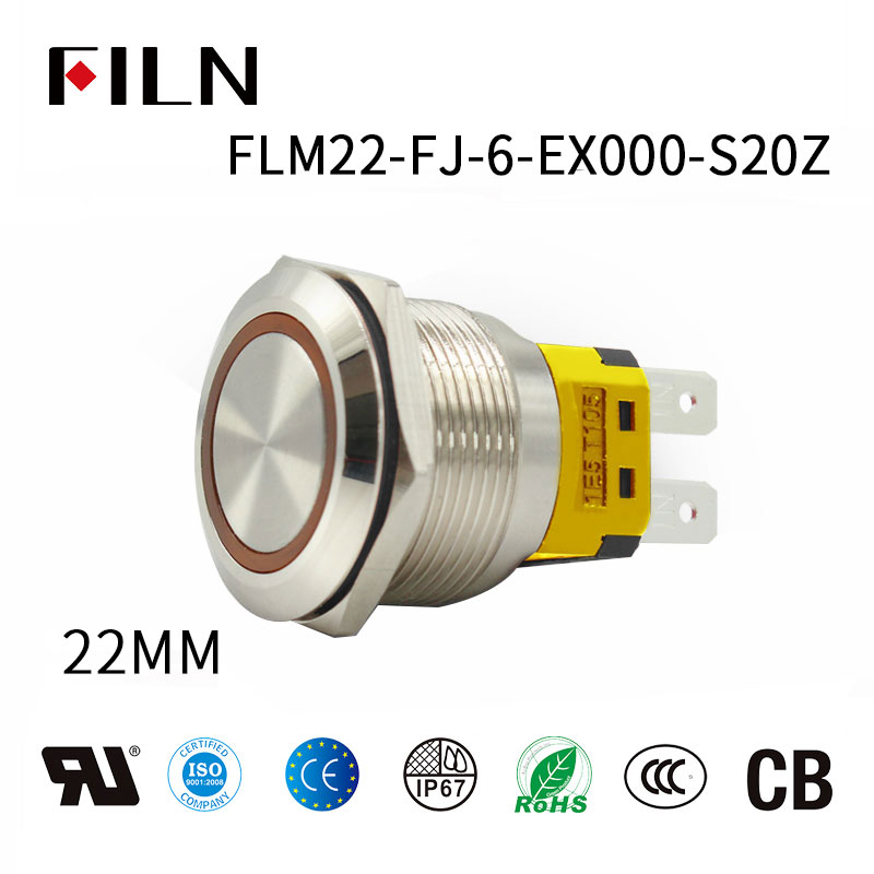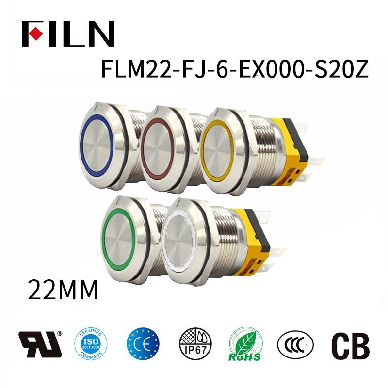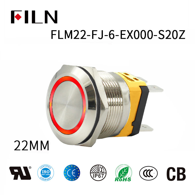 FILN 22MM 20A push button switch had passed the international management system certifications of UL, CE, ROSH, ISO90001, it also has a professional button switch testing laboratories, which can guarantee the button’s quality.