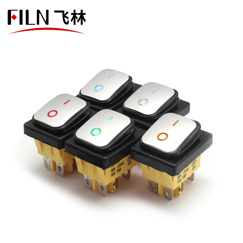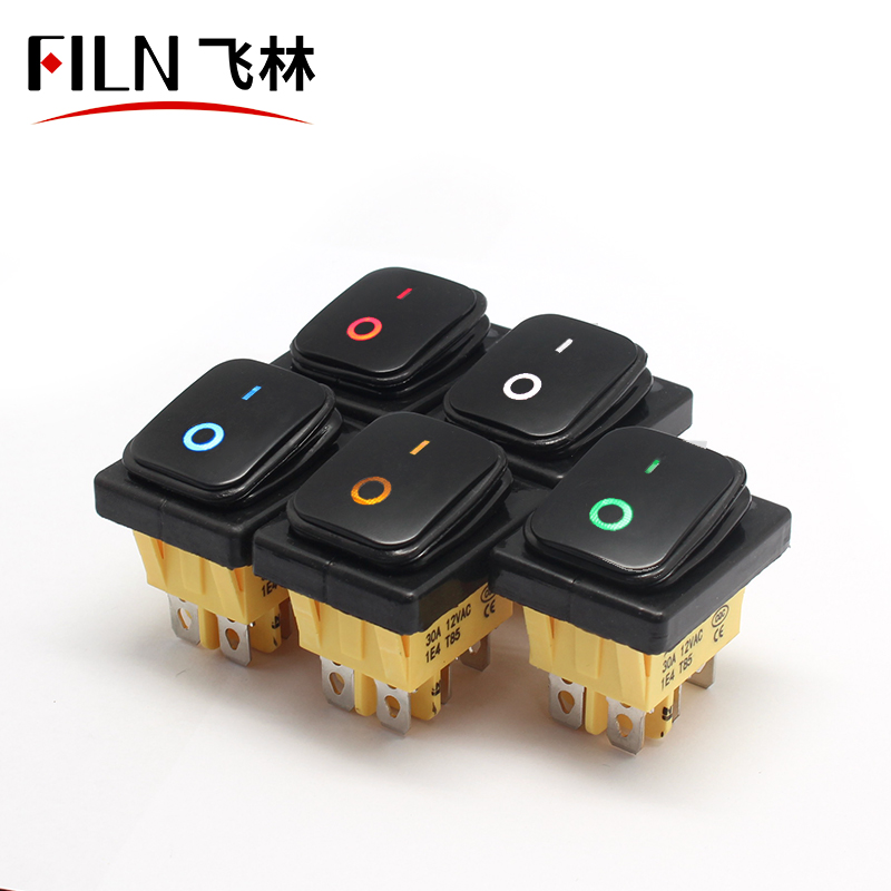 Filn 6핀 록커 스위치는 방수 및 방수 등급이 IP67인 등 다음과 같은 기능이 있습니다. 수입 고무 사용으로 장기간 사용 시 손상되기 어렵습니다. 전류는 20A 250V까지 도달할 수 있습니다. 키는 도장 처리되어 블랙 또는 실버 중 선택하여 외관을 더 아름답게 만들 수 있습니다.