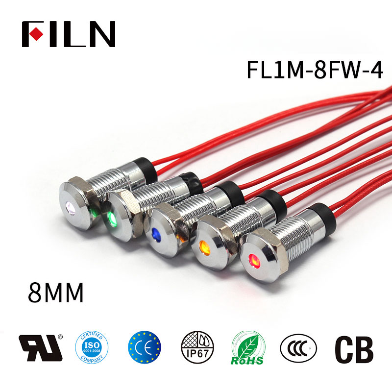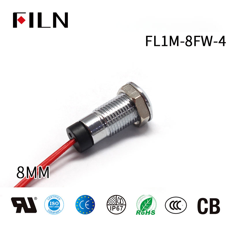 FL1M-8FW-4는 이 패널 인디케이터 라이트의 제품 모델입니다. FL은 FILN, 우리 회사의 브랜드 로고를 나타내며, M은 메탈을 나타냅니다. 이 패널 인디케이터 라이트의 쉘 재질은 황동 니켈 도금입니다. 8mm의 설치 크기를 나타내며 F는 헤드의 모양을 나타내며 평포인트를 나타냅니다. W는 라인이 있는 와이어를 나타내며 이 패널 인디케이터 라이트의 꼬리가 직접 라인 처리되었습니다. 이 와이어의 게이지 및 재질은 PVC 와이어 0.3mm² AWG22이며, 4는 당사의 8mm 평포인트와 라인이있는 패널 인디케이터 라이트의 제품 항목을 나타냅니다.