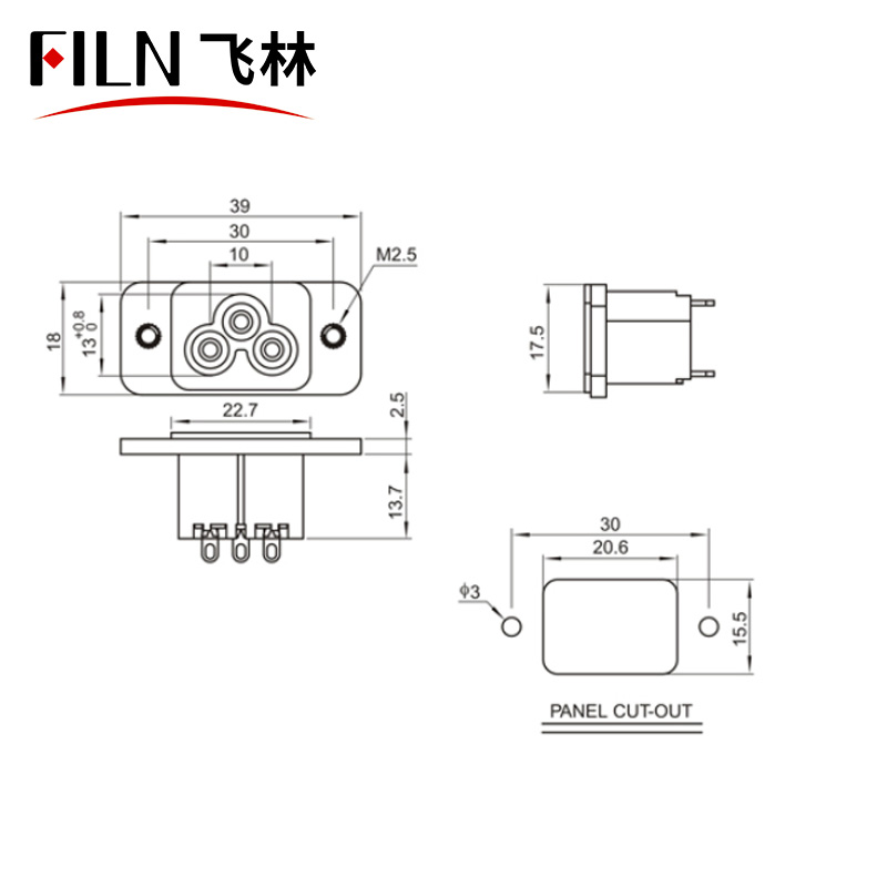Connector Socket Plug AC 125V 15A Panel Mount Outlet Power Socket