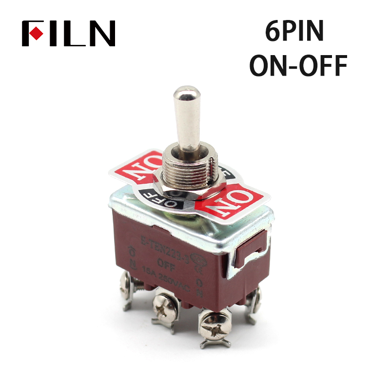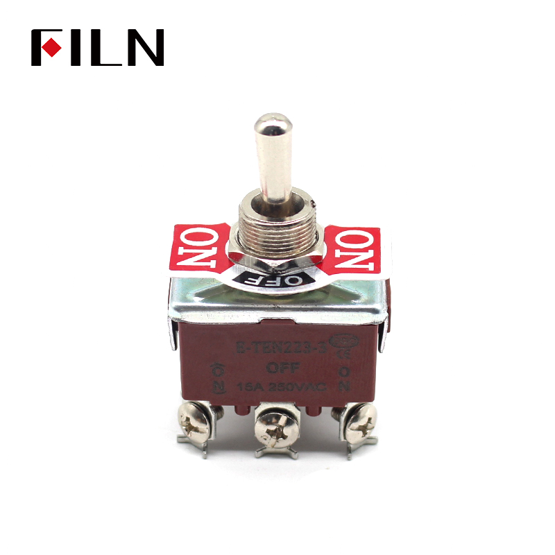 KN3-301 is an electrical toggle switches, also known as an electrical toggle switch. It is a three-way switch with six pins. It can handle currents of up to 30 amps. The switch has an ON-OFF function and is often used in industrial applications because of its durability and ability to withstand harsh environments.