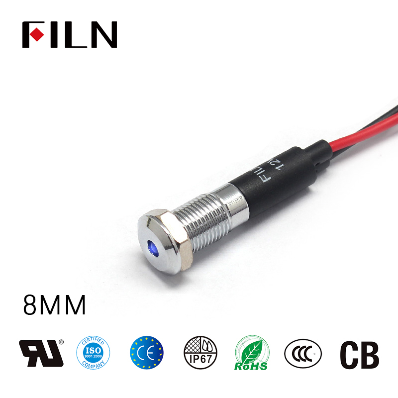 - 8mm 금속 파란색 표시등은 5가지 색상으로 빨강, 노랑, 녹색, 파랑, 흰색이 될 수 있습니다.