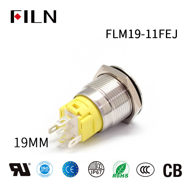 - 핀 구성: FLM19-11FJZ 19mm LED 래칭 버튼 Normally Closed 순간 스위치는 일반적으로 5 핀을 갖습니다. 이중 색상 스위치의 경우 6 핀이 있고, 삼중 색상 스위치의 경우 7 핀이 있습니다.