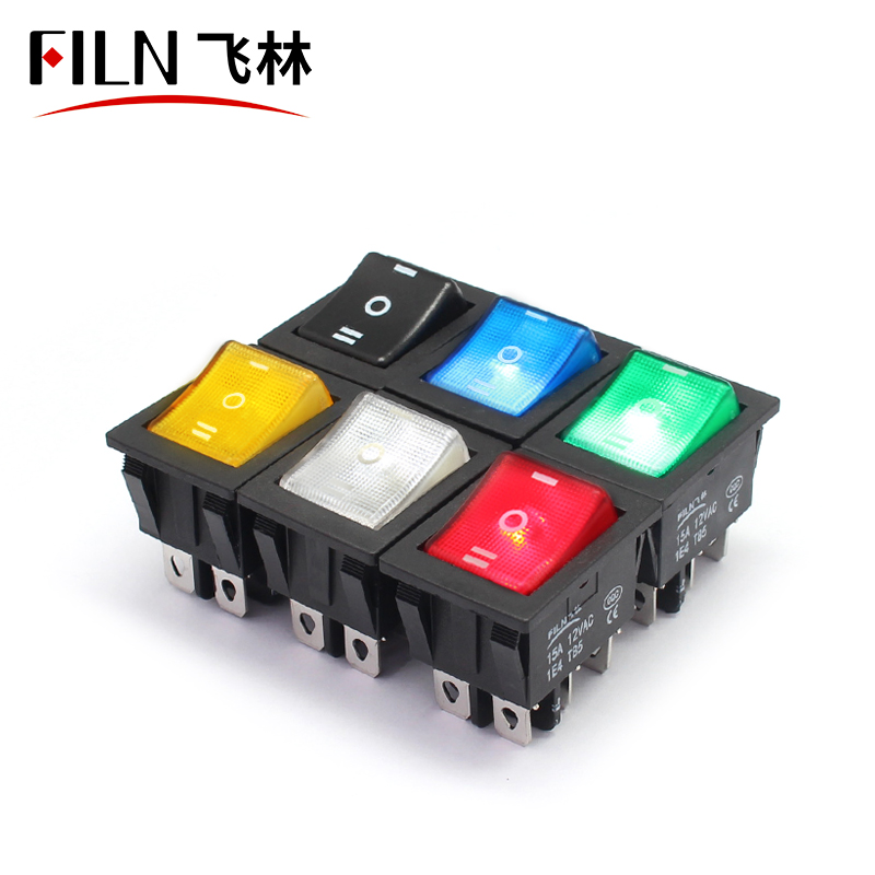 Filn은 6핀 15A On Off On 록커 스위치 생산에 20년의 경험이 있습니다. 또한 전문 록커 스위치 R&D 팀이 있어 24시간 이내에 여러분을 위한 맞춤형 솔루션을 제공할 수 있습니다. Filn의 판매 직원들은 해외 판매 경험이 10년 이상이며 국제 무역 문제를 해결하고 의사 소통할 수 있습니다. 록커 스위치에 관한 질문이 있으면 이메일 주소로 연락하십시오. inquiry@cnylin.com.cn.