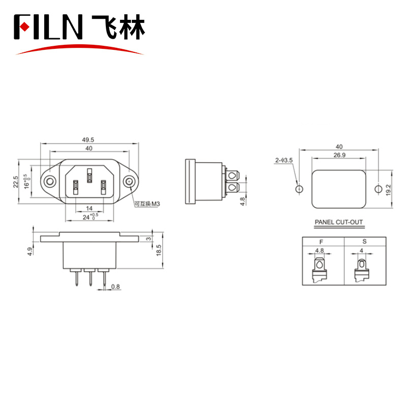 3 Pin Male Plug Panel Power Inlet Socket Connectors Adapter
